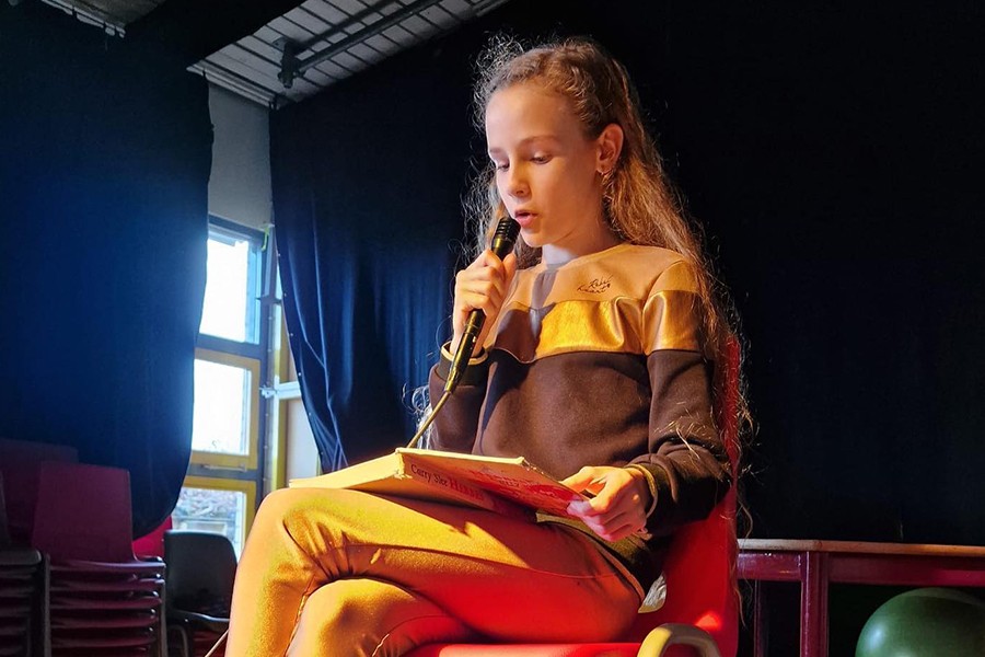 Na een superspannende finale heeft de jury een voorleeskampioen van onze school gekozen. Van de vier sterke deelnemers is Isis de winnaar. Gefeliciteerd!